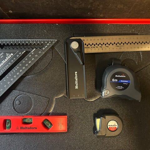 Den er ny , men har noe riper , pga oppbevares i arbeidsbil med annen verktøy.