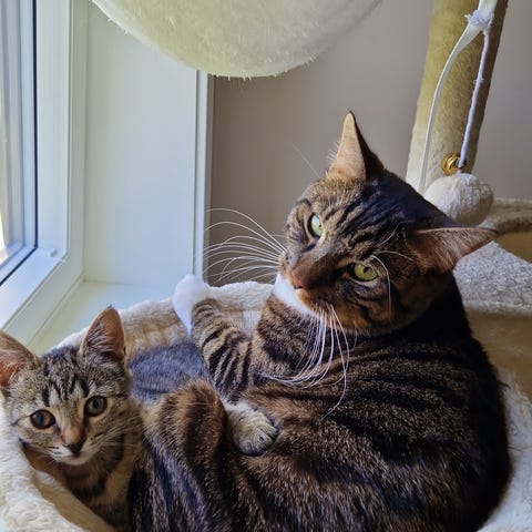 En søt katten , 15 år gammel,pga lange dager på jobb får hun ikke selskap og kos. Hun er rolig og veldig søt katt. Følger med alt. Kattehus og maten.