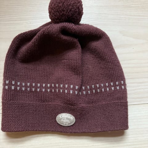 Lillelam barnelue i merinoull, farge hvit, størrelse 104. Luen har knyting under haken.