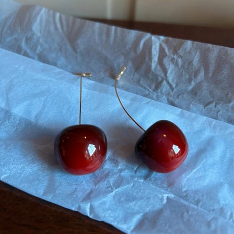 Kirsebær øredobber/kreoler i 18 karat gullbelagt messing
