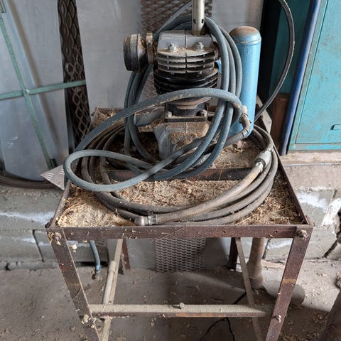 Brukt kompressor selges, stått på hylla i 3 år, sist i brukte den så ville den ikke starte mistenker dårlig kontakt inni motoren ,men ikke sikker selges derfor billig