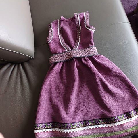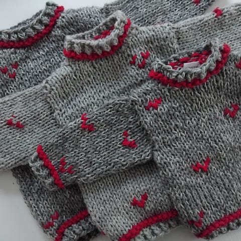 Kan også levere rød strikket bukse, votter og grå kjole på bestilling. ❤️