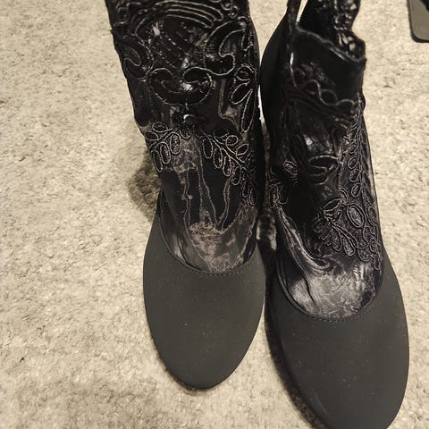 Et par svarte, semskete høye heler. Aldri brukt, kun prøvd på. Størrelse 39. De er normale i størrelsen
