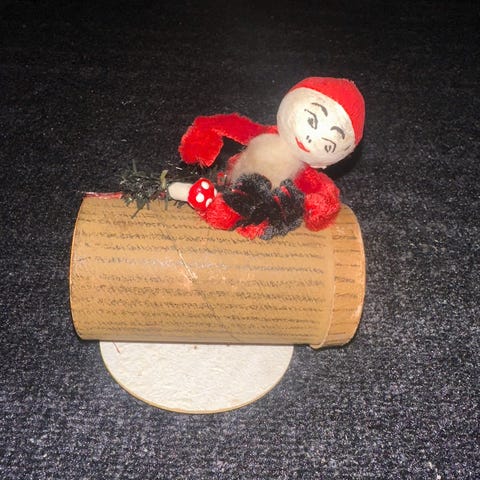 Julefigur rudolf reinsdyr med nisse på ryggen