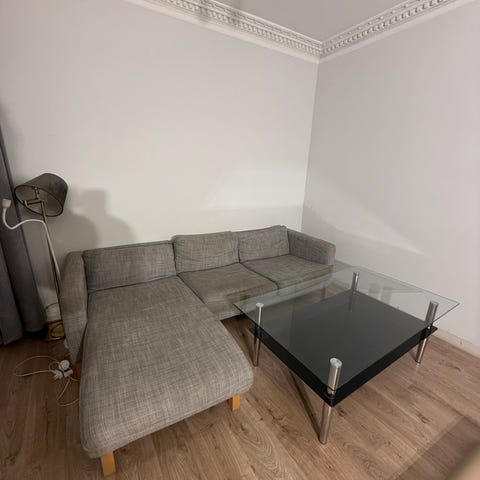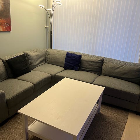 Turkis hjørnesofa 285 x 285 gis bort mot henting. Helt fin, men noe falmet et par dteder øverst.