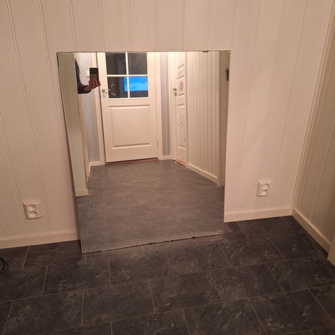 Stort speil med hvit treramme