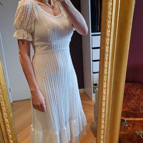 Kun brukt en gang. Puffede ermer og splitt nederst på skjørtet.