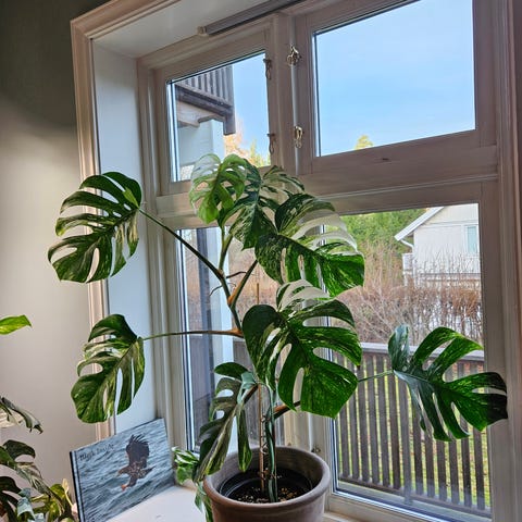 Monstera Variegata som jeg har grodd frem selv, men som dessverre har blitt noe neglisjert da det kom baby i hus.