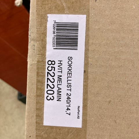 Har en kasse med sokkelbein i i to eller tre forskjellige lengder. Justerbare så de skal brukes som hverandre også stort sett. Kvalitetsmerke Hafele.