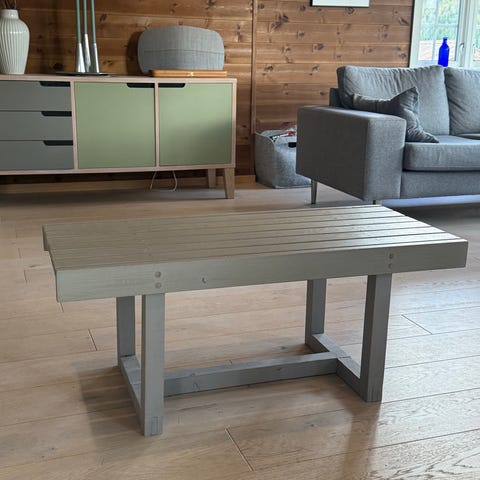 Lakket furubenk til kjøkkenbord selges. Benken er fin og har en grei sittehøyde. Den bare passer ikke inn på kjøkkenet (les: ungene ønsker heller å sitte på stoler 🙂).
