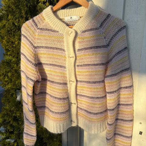 My Aurora Elisabeth Mino cardigan i en dyp burgunder melert farge, str XS.