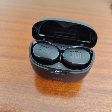 JBL Tune trådløse ørepropper i svart farge. Kommer med ladeetui. Designet for trådløs bruk med innebygd mikrofon og kontrollfunksjoner.