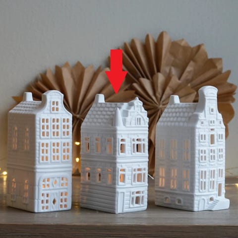 lyslykter, kanalhus, telysestake, lyshus, hus med lys, porselenshus for telys, hollandske kanalhus, Klevering Amsterdam, lysende hus, julehus