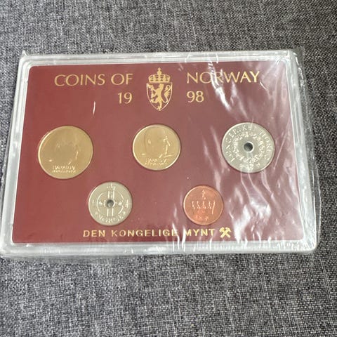 Myntpakke bestående av norske 1-kroninger. Myntene varierer i størrelse, design og årstall. Det er 100stk mynter i hver pose. Mp 100kr per pose.