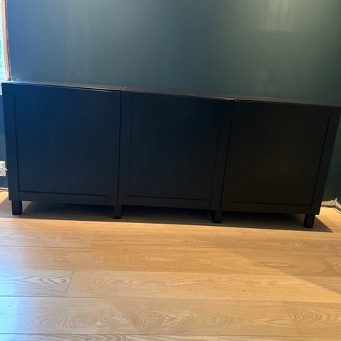 Selger et moderne og stilrent veggmontert skapkombinasjon i svært god stand - IKEA Bestå.