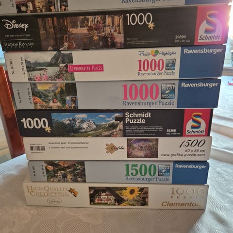 Puslespill 500 brikker 50kr ,Krypto 100kr ,1000 brikker 100kr r