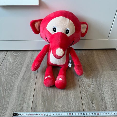 Fantes kosedyr i lilla farge med beige detaljer. Laget av mykt materiale, egnet for barn. Har ett merke etter klistremerke med navn på ene øret. Eller fint brukt. Mangler bleien. Kan sendes med postnord til kr 69 og sammen med andre annonser