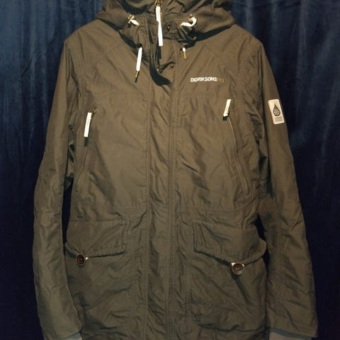 Vinterjakke/skijakke i str 38. Lite brukt, men har noen flekker ved håndledd som ikke er forsøkt vasket bort. God og varm jakke 😊