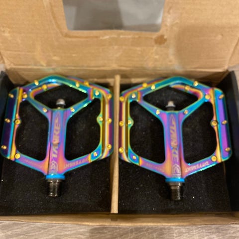 Flere pedaler selges 100,- pr sett eller 400,- for alle sammen. To av settene er ubrukte med litt lagringsmerker. Enkelte passer til bla Apache, Tomahawk, kombi og andre Øglændsykler.