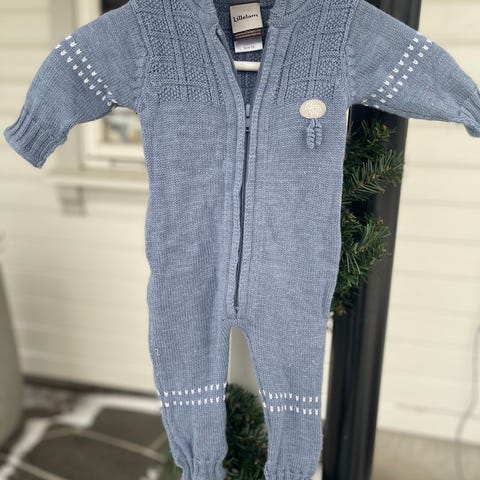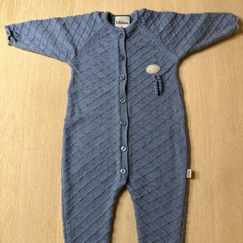 Lillelam Merinoull body/romper i størrelse 62, farget i lilla og grå striper. Kun brukt et par ganger,