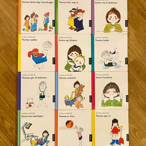Diverse barnebøker selges, passer for barn fra siste året i barnehagen, på småtrinnet og på mellomtrinn. Se gjerne bilder for å se første side i boka.