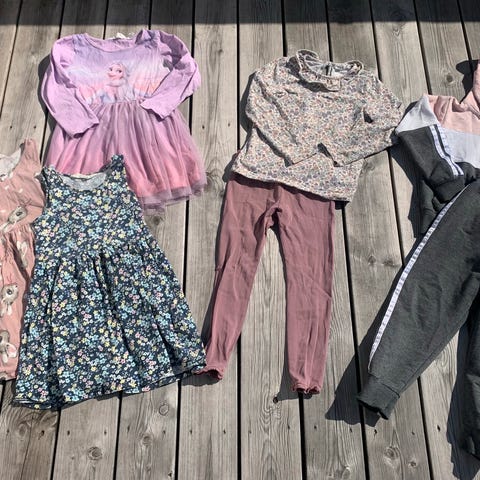 Mest i str 92. jeans, lyselilla jakke og hummelgenser i str 86 og Ella og il bukse i 1-2 år (lang og smal).