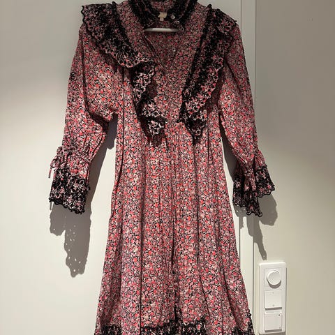 ByTimo romantisk sort kjole str XS -med volang og blondekant nederst og avsl ermer