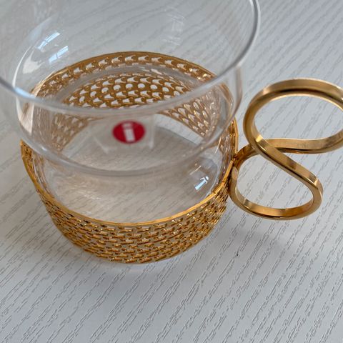Selger et sett med 6 vakre teglass fra Iittala (Finland) med metall-holdere (underkopper).