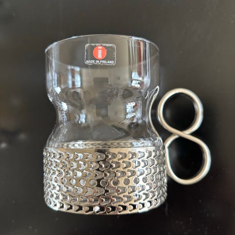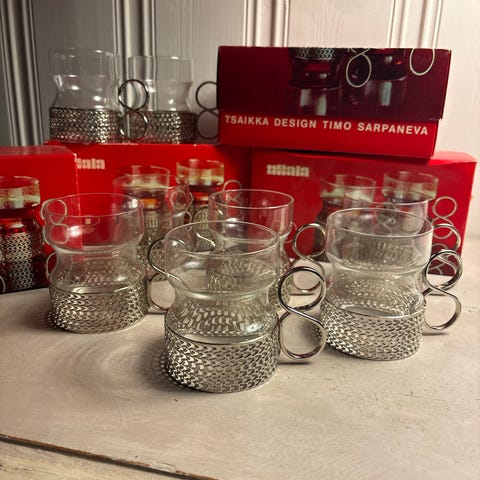 Vintage Iittala Finland Tsaikka / Tea Glasses med metallholdere – 6 stk
