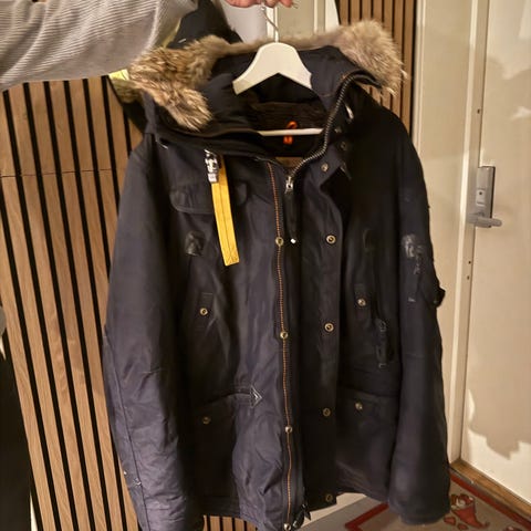 Parajumper kodiak str M som er romslig i størrelsen. Så passer de fleste.