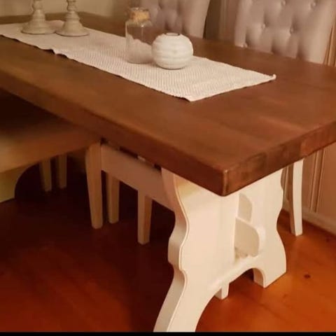 Stort rustikt tungt solid Bombay spisebord. Normal bruksslitasje. De tre naglene som mangler tror jeg du kan få tak i på Bohus/jernvarehandel.
