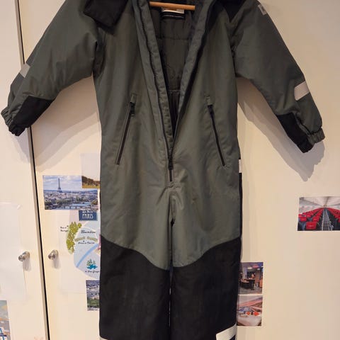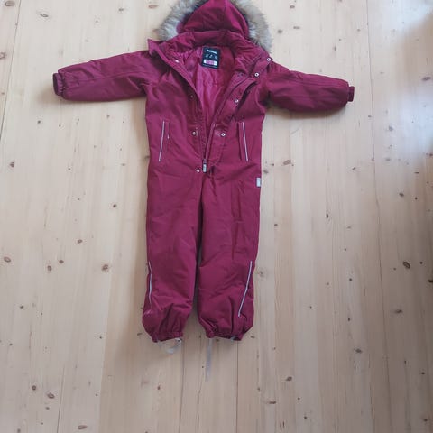 Reima vinterdress str 116 selges. Godt brukt av to barn, men holder et par sesonger til. Den har merker etter vanlig slitasje, men ingen skader eller hull. Ene fotstrikket ble ødelagt, derfor to forskjellige (se bilde). Kan sendes.