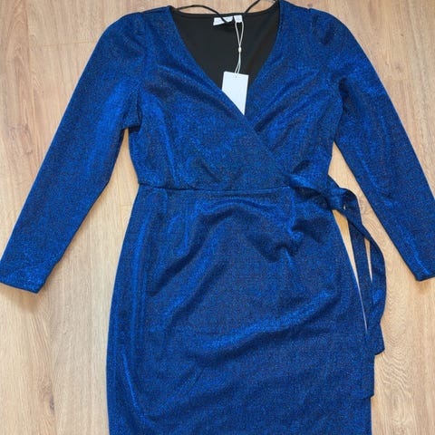 Von Gässler kjole i svart farge, størrelse 38. Kjolen har lange ermer og dekorative paljetter ved utringningen. Materialet gir en myk og behagelig passform.