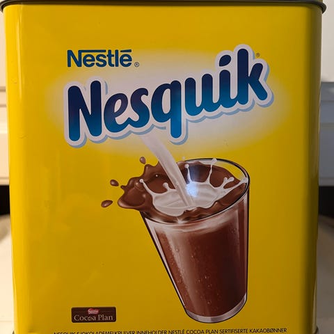 Néstle Nesquik boks i metall. I fin stands, men enkelte bruksspor forekommer, se bilder.