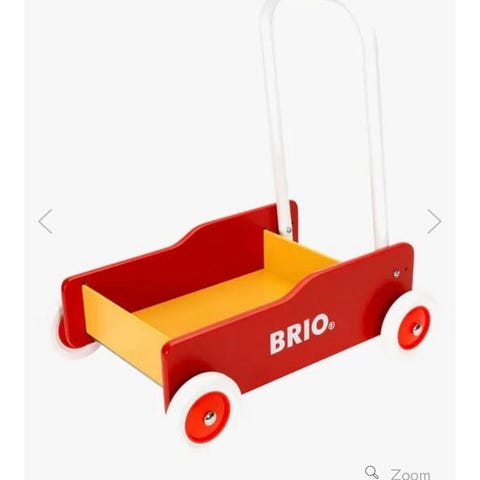 BRIO Gåvogn barn leke i svart med hvite håndtak og røde hjul. Laget for små barn som lærer å gå, designet for å gi støtte og balanse.