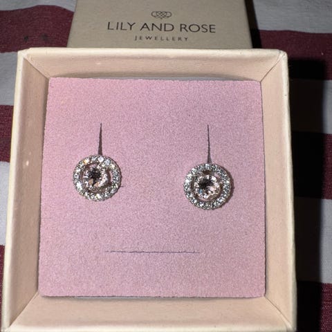 Helt nye øredobber som aldri har vært i bruk. Gullfargede med rhinestones. Modellen heter Makayla. Kommer i original smykkeeske. Perfekt til jul, julebord og nyttårsaften.