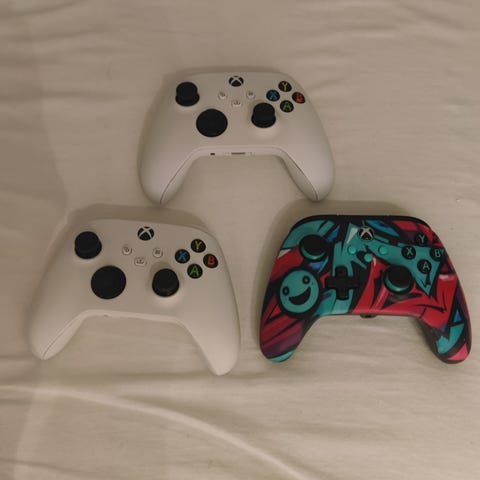 KontrolFreek Galaxy Xbox. thumbsticks i lilla farge. Designet for å forbedre spillkontroll og presisjon på Xbox kontrollere.