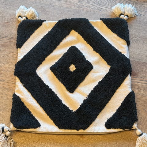 3 stk pynteputetrekk svart/beige mønster. 150kr for alle.