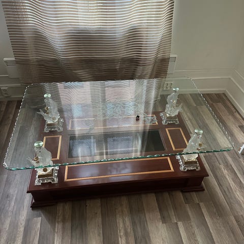 Salongbord gis bort mot henting. Setter det innenfor inngangsdøra i blokka.