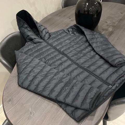 Lett foret jakke,lommer m glidelås,avtagbar hette osv.
