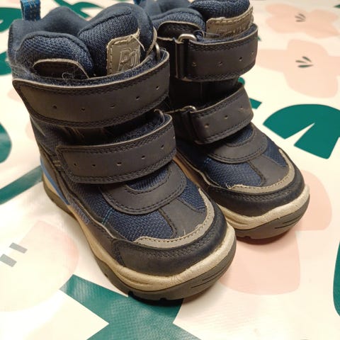 Svært lette Ponny sandaler / innesko for barn, unisex, størrelse 24. Sandalene er svarte med åpne partier og borrelåsfeste for enkel justering. Pent brukt