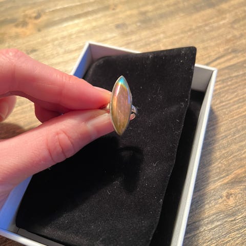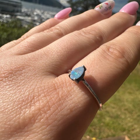 Kjøpte denne nydelige ringen av en kunsthåndverker i Mexico. Lokal fire opal satt i bohemsk sølvinnfatning. Ca str 56. Kan trenge en forsiktig puss på sølvet. Kommer i tilfeldig smykkeeske.