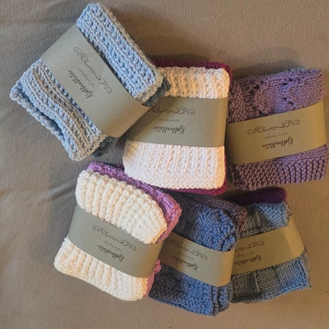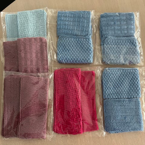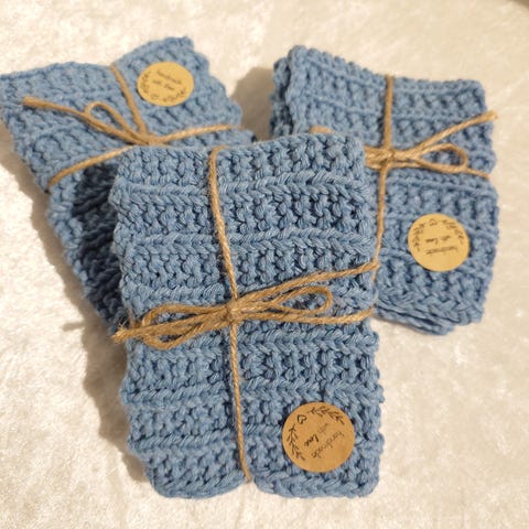 Håndlagde vaskekluter sett i blå nyanser