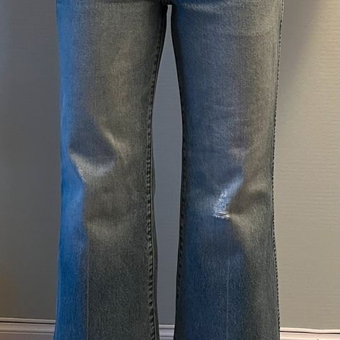 Helt ny Wrangler flare jeans. Kun brukt en gang, men ble feil størrelse for meg. Mye stretch i denne. Størrelse W28L32.