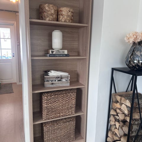 Selger 4stk skap/hyller for 300,- per stk. perfekt oppbevaring til interiør, leker osv. kan bygges oppå hverandre som vist på bildet (vi skrudde de 4 hyllene sammen, men de er nå separate). De kommer uten bein da vi aldri brukte de.