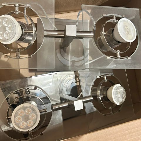 Bright House taklampe med dråpeformede glassheng selges. Lyser godt og ser fint ut. Det er montert på ledning som kan kobles på stikkontakt, men denne ledningen har noe skader på seg så bør med fordel byttes ut.