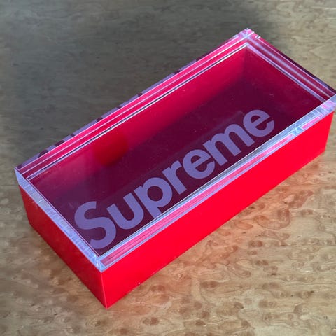 Esken er cirka 39,6cm lang, 8,6cm dyp og 11,5cm høy.