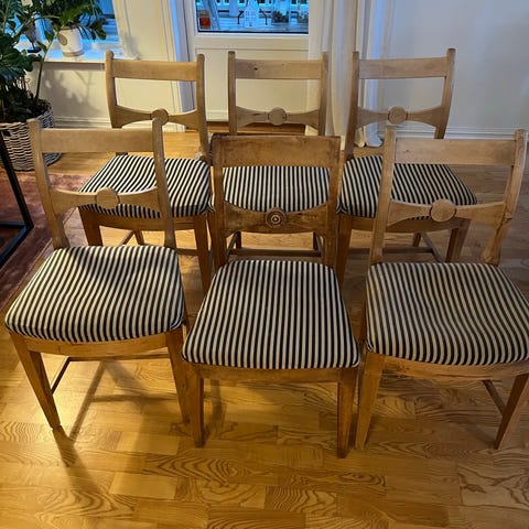 Fransk kaféstoler. Malt i en mørk blåfarge som kan minne om havdyp.