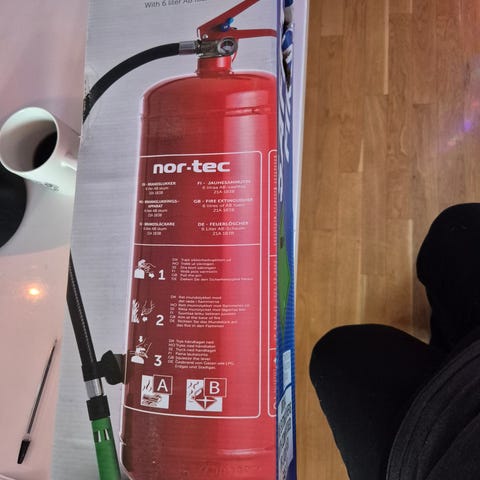 Total metallpulverslokker 12kg klasse D, service november 2025, går ut november 2035.