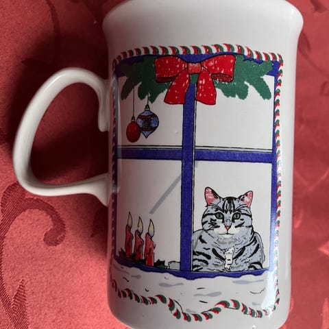Arabia Mummi kopp med fargerikt motiv. Koppen har illustrasjoner av Mummitrollet-karakterer og blomster i oransje, gult og svart. Egnet for daglig bruk som drikkekopp.